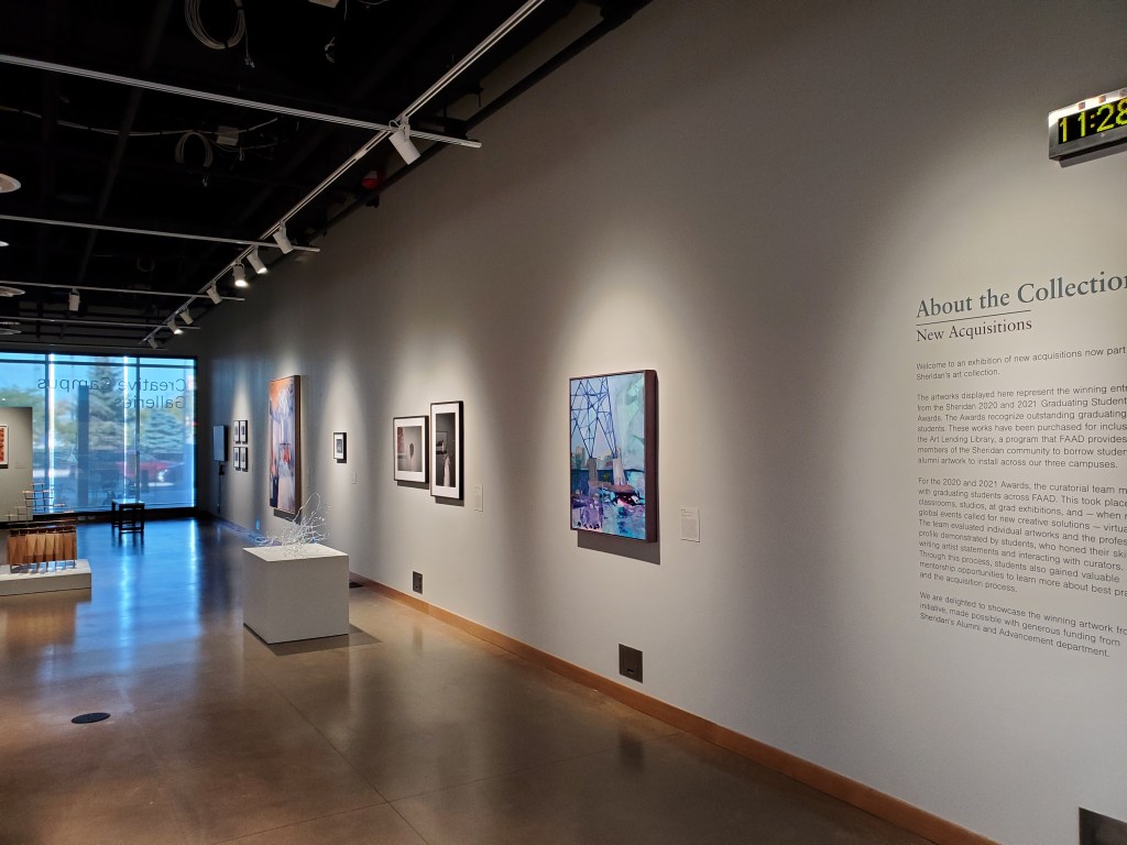 “About the Collection” features the winning entries from the Sheridan 2020 and 2021 Graduating Student Art Awards. The Awards recognize outstanding graduating students and purchase their artwork for inclusion in our Art Lending Library. Through the Art Lending Library, members of the Sheridan community can borrow student artwork to install across our three campuses.