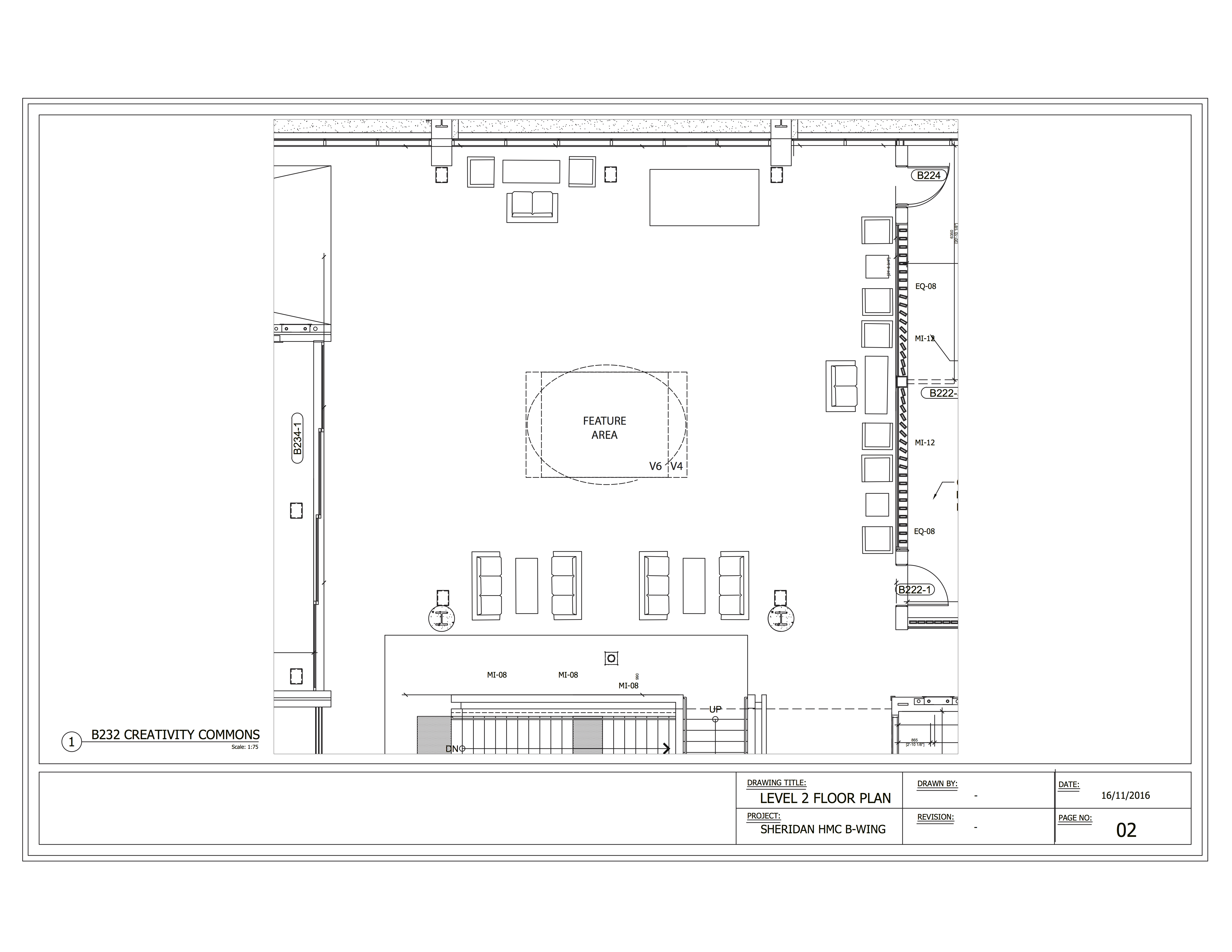 Feature Area Showing Version Four and Six Footprint with Furniture, Level 2 Floorplan, Sheridan HMC B-Wing