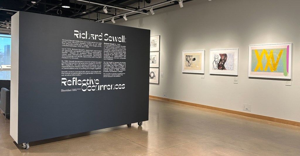 Richard Sewell: Reflective Occurrences showcases prints from Richard Sewell’s career as a printmaker. The artworks come from “suites” and single prints, created between 1975 and 1984.