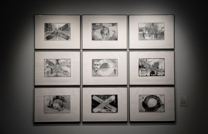 Up to 1975, Sewell’s approach was based on generally accepted principles of printmaking. He began to question these established views and introduced procedures, techniques and materials not usually associated with the print medium to his work. By 1980, Sewell developed a format where he used printed elements in his work from paper to 35 mm. film negative. He was seeing printmaking as an organizational medium that does not have a style or personalized way of putting an image together.